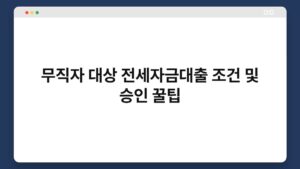 무직자로서 전세자금대출을 받는 것은 쉽지 않은 일입니다. 대출 조건이 까다롭고 승인받기 위한 여러 요소를 고려해야 하기 때문이죠. 하지만 걱정하지 마세요. 이 글에서는 무직자를 위한 전세자금대출의 조건과 승인 꿀팁을 자세히 안내해 드리겠습니다. 대출을 준비하면서 놓치기 쉬운 ...