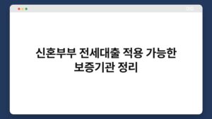 신혼부부가 전세대출을 고려할 때 가장 중요한 요소 중 하나는 보증기관입니다. 보증기관은 대출을 받을 때 필요한 보증을 제공해 주므로 어떤 기관을 선택하느냐에 따라 대출 조건이 달라질 수 있습니다. 이 글에서는 신혼부부가 전세대출을 받을 때 적용 가능한 ...
