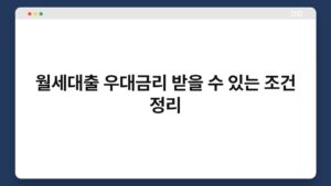 월세를 위한 대출 우대금리를 받을 수 있는 조건이 궁금하신가요? 많은 사람들이 월세 대출을 고려할 때 금리가 얼마나 중요한지 잘 알고 있습니다. 우대금리를 받을 수 있다면 이자 부담을 크게 줄일 수 있죠. 이번 글에서는 월세 대출에서 ...