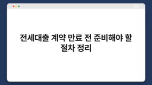 전세대출 계약이 만료되기 전에 어떤 준비를 해야 할까요? 많은 사람들이 이 시점에서 막막함을 느끼곤 합니다. 하지만 걱정하지 마세요. 이번 글에서는 전세대출 계약 만료 전 준비해야 할 절차를 정리해 드리겠습니다. 중요한 정보와 팁을 통해 여러분이 현명하게 ...