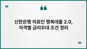 신한은행의 의료인 행복대출 2.0은 의료인을 위한 특별한 금융 상품입니다. 이 대출은 의료 종사자들이 안정적인 생활을 유지하고 필요한 자금을 마련할 수 있도록 돕기 위해 설계되었습니다. 그럼 이 대출의 자격별 금리우대 조건에 대해 자세히 알아보겠습니다. 의료인이라면 꼭 ...