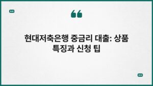 현대저축은행 중금리 대출: 상품 특징과 신청 팁