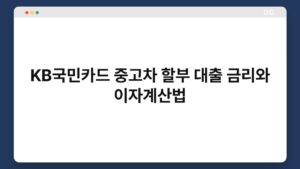 중고차를 구매할 때 KB국민카드의 중고차 할부 대출이 많은 사람들에게 관심을 받고 있습니다. 이 대출 상품은 적절한 금리와 유연한 이자 계산법으로 소비자들에게 매력적입니다. 하지만 대출을 고려할 때 금리와 이자 계산법을 이해하는 것이 매우 중요하죠. 이 글에서는 ...