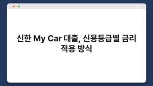 자동차를 구입하고 싶은데 자금이 부족하신가요? 신한 My Car 대출은 그런 고민을 해결해줄 수 있는 좋은 선택입니다. 이 대출 상품은 신용등급에 따라 다양한 금리를 제공하여 고객님이 보다 유리한 조건으로 대출을 받을 수 있도록 돕습니다. 신용등급별 금리 ...