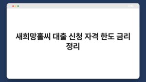 요즘 경제적 어려움을 겪고 있는 분들이 많습니다. 이런 상황에서 도움이 될 수 있는 대출 상품이 바로 새희망홀씨 대출입니다. 이 대출은 저소득층을 위한 맞춤형 상품으로 신청 자격과 한도 금리에 대한 정보가 필요하실 텐데요. 이 글에서는 새희망홀씨 ...